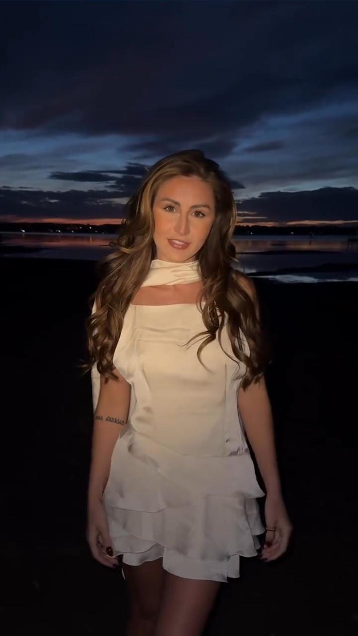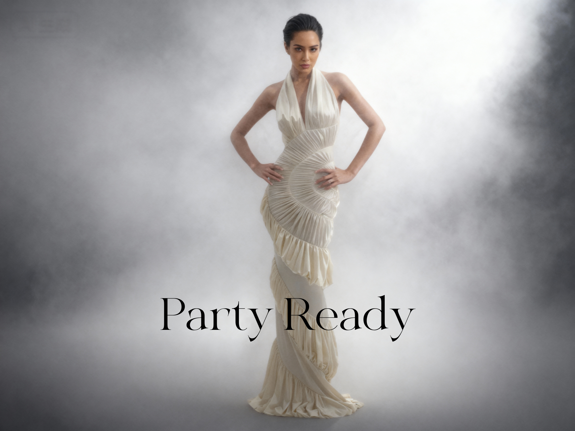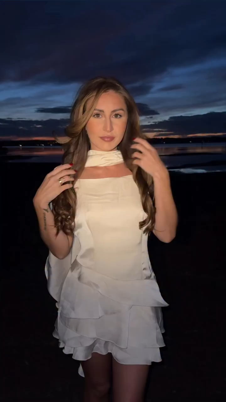 Eclipsk White Shawl Panel Ruffled Satin Mini Dress